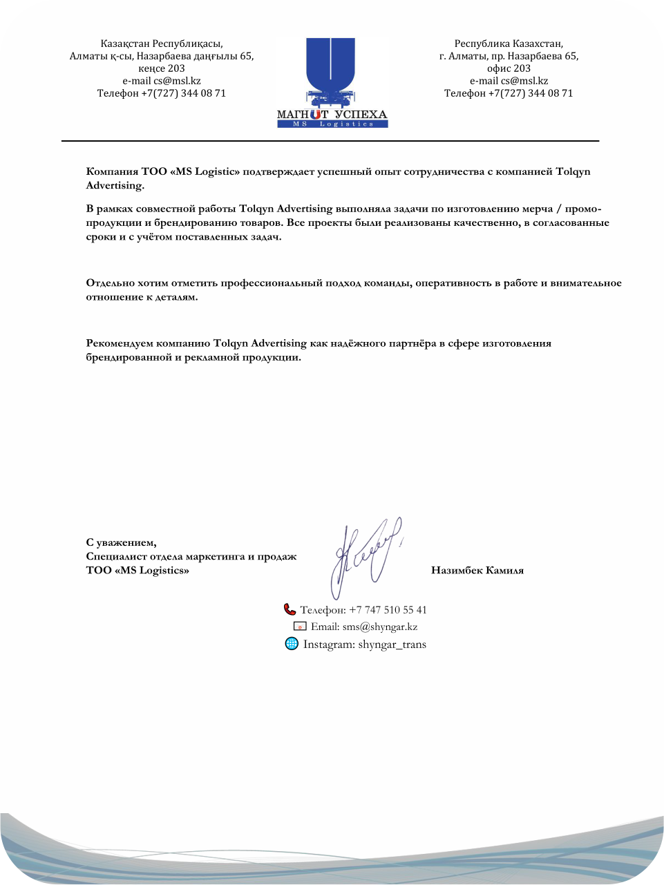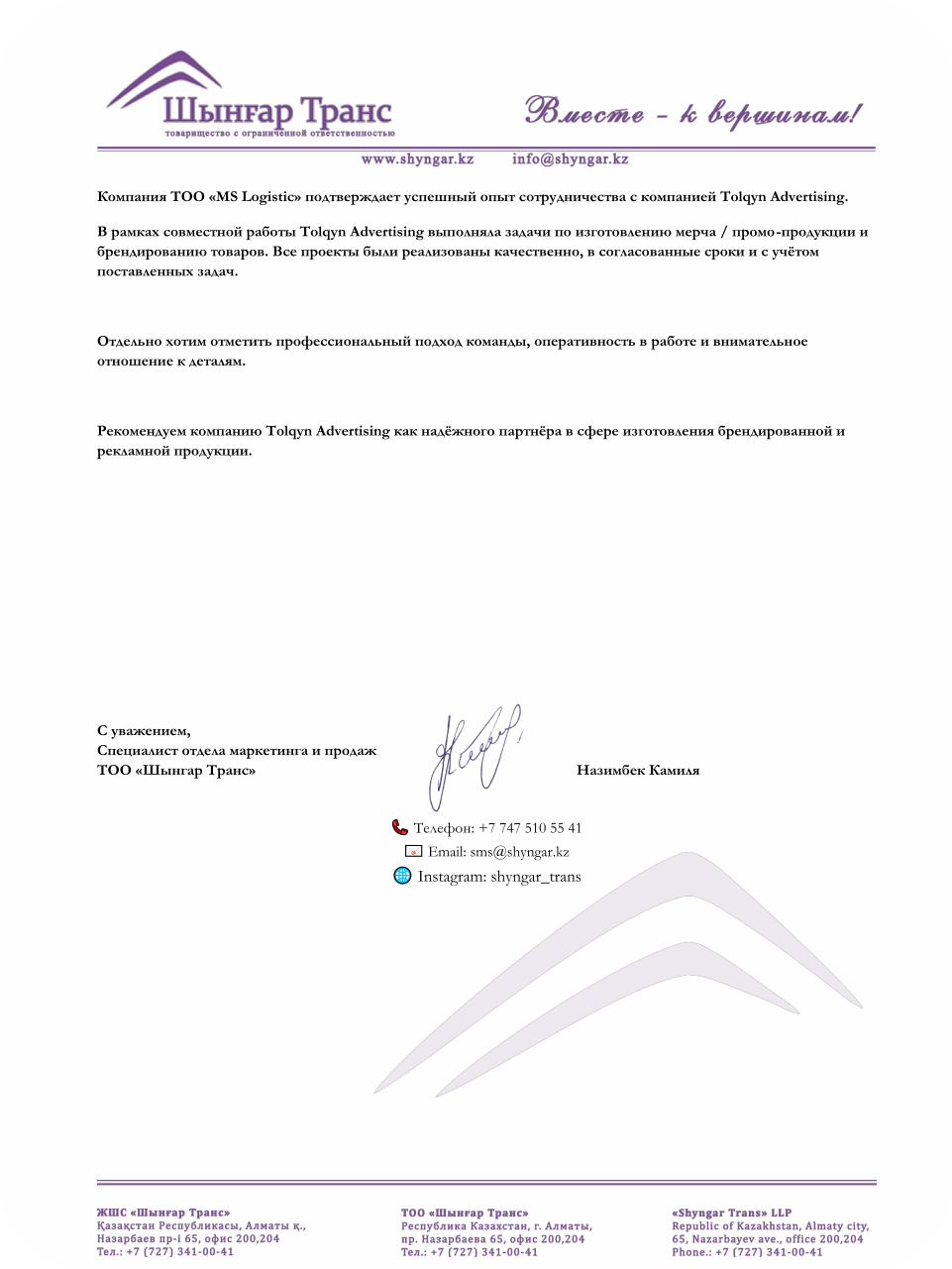 по городу Алматы и за рубежом