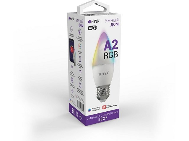 Умная светодиодная лампочка HIPER IoT LED A2 RGB в форме свечи С37, поддерживает удаленное управление через приложение и предназначена для использования в любых устройствах для освещения со стандартным цоколем E27, расширяя их возможности. Меняйте температуру света, настраивайте комфортный теплый свет или контрастный холодный и выбирайте любой цвет свечения. Также вы можете настроить наиболее подходящий вам оттенок света лампы и регулировать яркость света придавая дополнительный уют вашему дому.