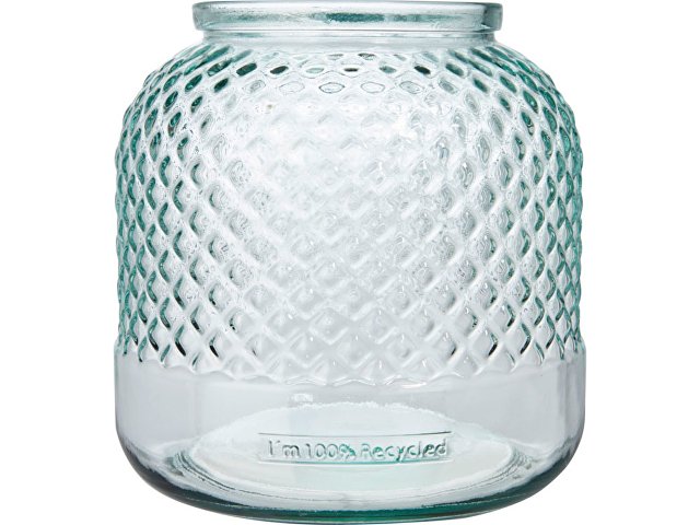 Подсвечник из переработанного стекла с алмазным рельефом. Этот подсвечник создан из 2 переработанных стеклянных бутылок. Переработанное стекло не отличается ничем по качеству от обычного, но при этом является более экологичным, ведь на изготовление этого материала тратится меньше энергии, сырья и примесей. Свеча в комплект не входит.