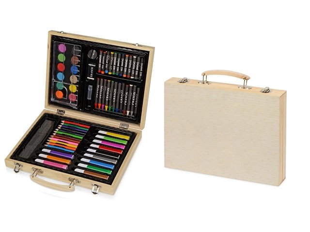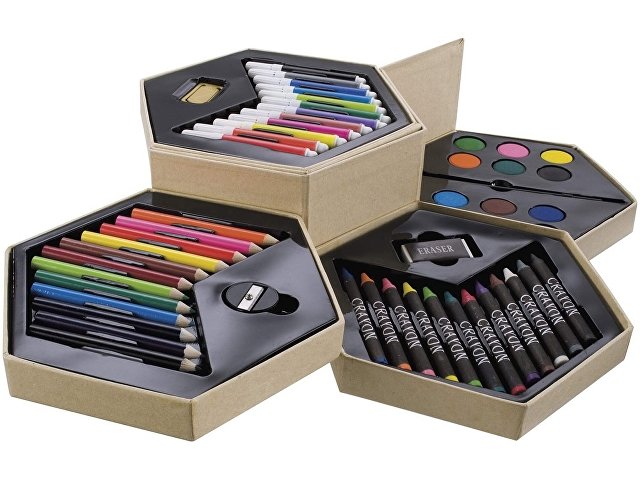 - Канцелярия и творчество – карандаши, фломастеры, альбомы и наборы для рисования с логотипом.