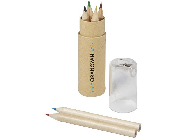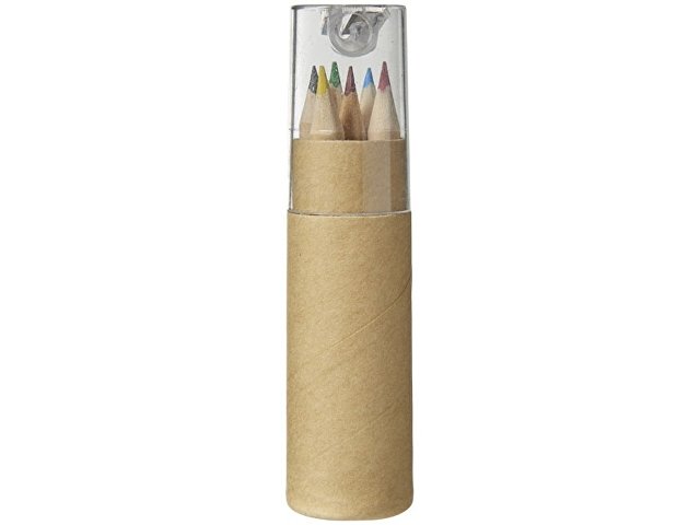Набор содержит 6 цветных карандашей и футляр с крышкой-точилкой. Отличный вариант для создания оригинального промосувенира. Крышка позволит аккуратно собрать стружку в процессе подтачивания карандашей.