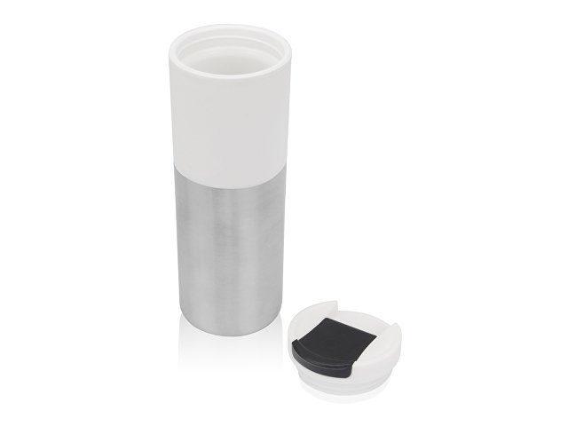 Цвет товара: плед- бело-черный, термокружка- блый/серебристый