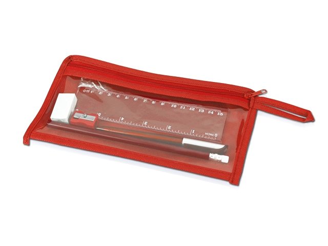Комплектность: ручка шариковая, карандаш, точилка, ластик, линейка, чехол