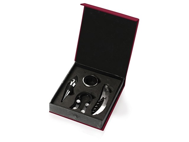 - Премиум-набор для вина – открывалка, пробка для бутылки, фольгорез и аэратор. Логотип можно нанести на металлические и деревянные элементы.