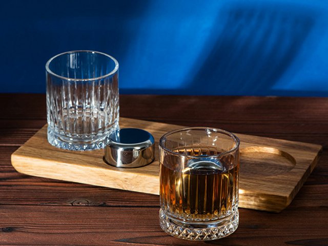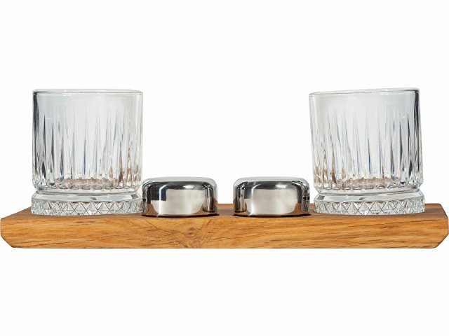 Комплектность: деревянная подставка 28,5 х 12,9 х 2,1 см, бокал 210 мл- 2 шт, шайба для виски d5 х 2,8 см- 2 шт, упаковочная коробка