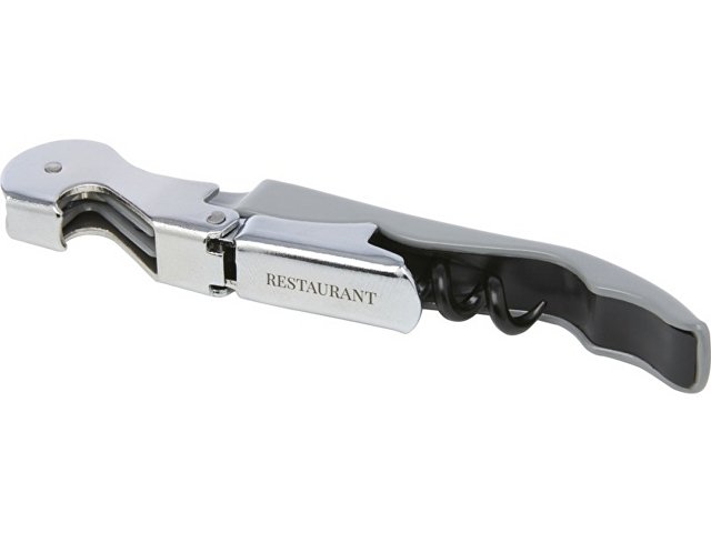 Нож официанта из нержавеющей стали с цветным корпусом со штопором, обрезчиком для фольги и открывалкой для бутылок. Благодаря двухступенчатой конструкции с его помощью вытащить пробку из бутылки не составит труда.