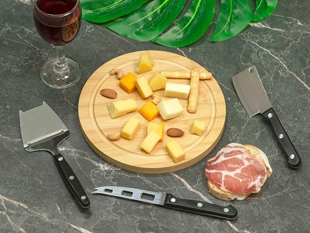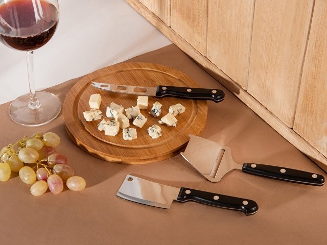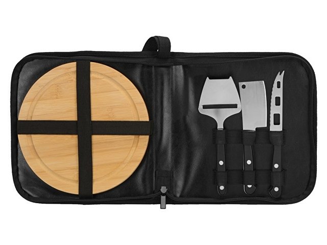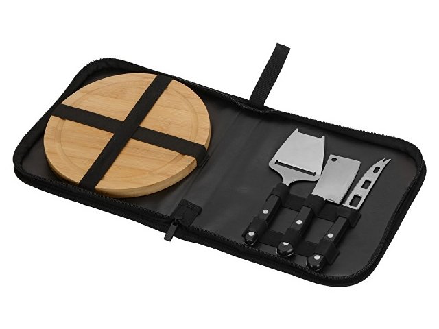 Комплектность: чехол, разделочная доска, нож-топорик, нож для сыра с "воздушным карманом", лопатка для сыра