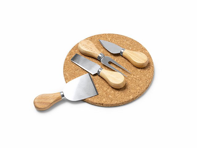 Набор для сыра с 4 столовыми приборами из нержавеющей стали и деревянными ручками. Представлен в элегантном футляре