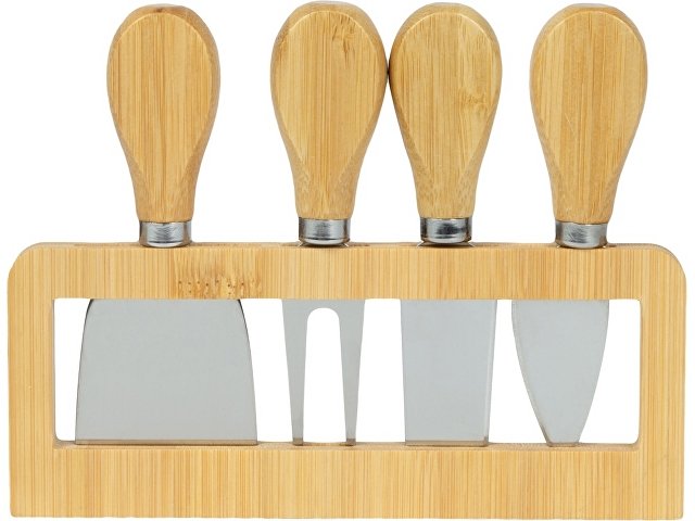Комплектность: вилка для сыра 12,6 см, нож листовидный 11,9 см, нож-лопатка 12,2 см, нож-топорик 12,4 см, подставка 17,1 х 7 х 1,2 см, доска 28,4 х 19,3 х 1,2