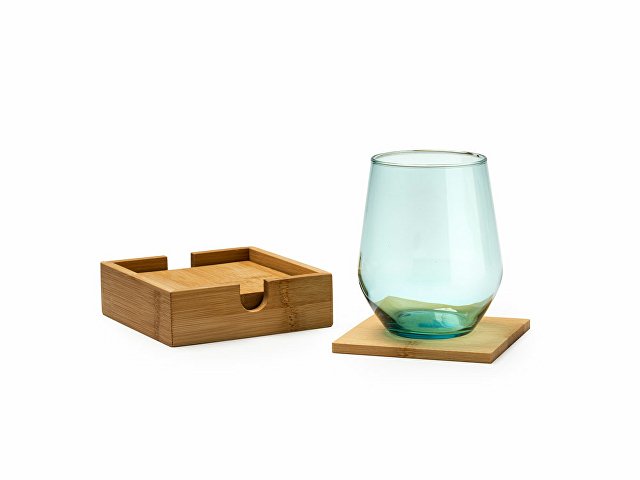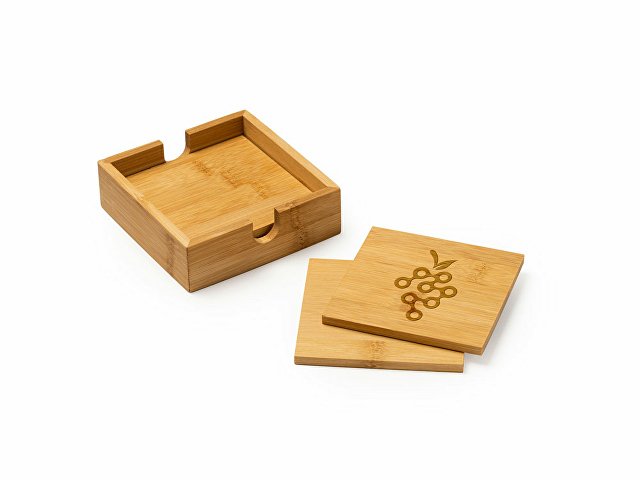 Набор из 4 бамбуковых подставок в элегантной бамбуковой коробке.