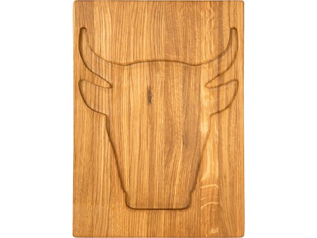 На одной из сторон имеется углубление в форме головы быка, благодаря которому сок из стейка не прольётся на стол.