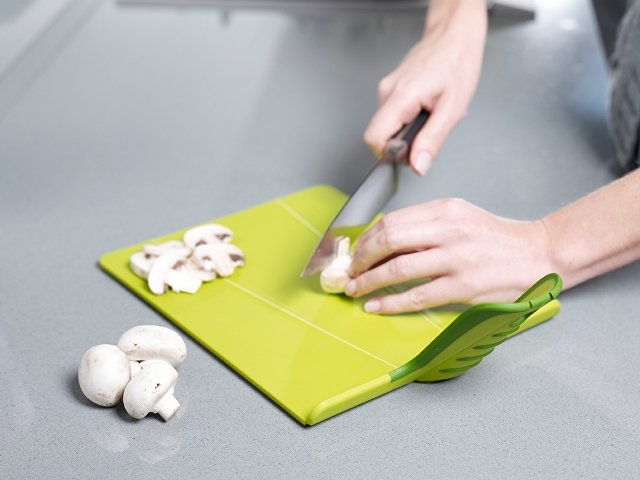 Уникальная складная доска, которая принесла бренду Joseph Joseph мировую известность и ряд престижных наград. В плоском состоянии она предоставляет надёжную поверхность для разделывания любых продуктов. В результате лёгкого сжатия рукоятки края доски аккуратно складываются, образуя удобный совок, который позволит аккуратно переложить нарезанные ингредиенты в нужную ёмкость.