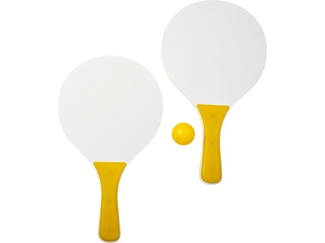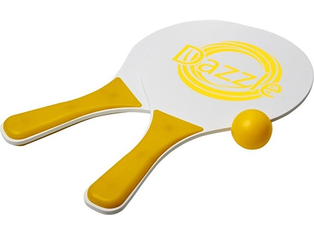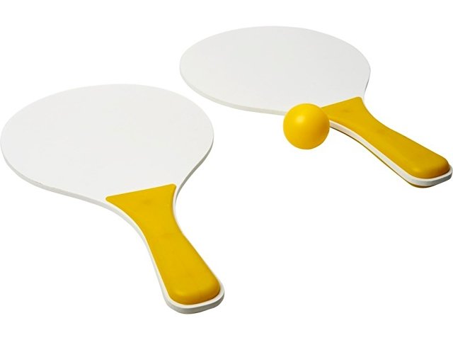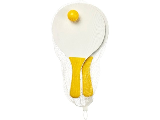 Набор для пляжных игр Bounce. С этим набором пляжных игр, предлагаемым в широкой цветовой гамме, всегда весело. Этот прочный набор пляжных игр изготовлен из дерева МДФ с цветной ручкой из полипропилена. Упаковано вместе с мягким шариком одного цвета в сетчатую упаковку, что позволяет провести веселый день на пляже. МДФ.