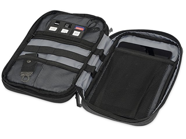 Линейка товаров "District" создана для людей, которые ценят удобство и комфорт в путешествиях. Коллекцию аксессуаров, сумок и рюкзаков отличают минимализм и внимание к деталям. Органайзер District, Voyager обеспечивает упорядоченное хранение гаджетов, адаптеров, наушников и прочих электронных аксессуаров. Имеет стильный лаконичный дизайн и изготовлен из полиэстера – прочного, не склонного к истиранию и деформированию материала. Модель значительно упрощает пользование электронными аксессуарами в повседневной жизни, отлично подойдет для работы, дома и путешествий. • Два больших отделения с множеством отсеков обеспечивают эргономичное хранение портативных электронных устройств и шнуров. • Секции для проводов надежно фиксируют кабели и предотвращают спутывание между собой. • Ячейки небольших размеров оптимальны для хранения SIM-карт и карт памяти. • Отделение для планшета позволяет хранить его отдельно от других аксессуаров. • Внешний карман подойдет для хранения паспорта, авиабилета и других документов, которые всегда должны быть в зоне доступа. • Удобная крепкая ручка для комфортной переноски.