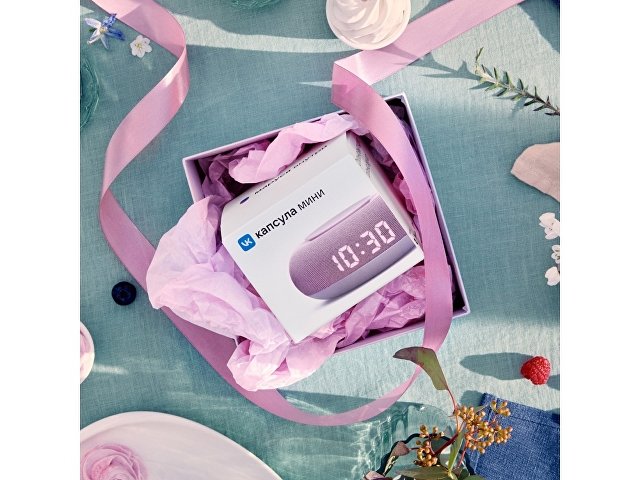 VK Капсула Мини — компактная умная колонка c дисплеем, который показывает время, погоду и милые глазки Маруси. Капсула Мини представлена в пяти цветах и отлично смотрится в любом интерьере. Дружелюбный голосовой помощник Маруся всегда рада поболтать с вами и ответить на вопросы. А ещё она расскажет о погоде и новостях, развлечёт играми и музыкой, подскажет рецепт, позвонит и напишет друзьям ВКонтакте — только скажите. Лучший друг детей Маруся обожает детей и отлично понимает их речь. У неё сотни развивающих игр и сказок, чтобы увлечь ребёнка, пока вы заняты. И есть детский режим, который защищает от «взрослых» тем и песен. Впечатляющий звук Несмотря на компактный размер, VK Капсула Мини звучит объёмно и наполняет всю комнату музыкой. Наслаждайтесь кристально чистым и детальным звуком. Музыка на любой вкус Слушайте VK Музыку: Маруся поставит ваши любимые песни и найдёт подборки для спорта или засыпания. Музыку из других сервисов можно включить по Bluetooth. А ещё есть приятные фоновые шумы и радио. Сердце умного дома Управляйте умной техникой голосом: запускайте пылесос, зажигайте свет, включайте кино в Wink. Маруся поддерживает более 40 брендов умного дома: Xiaomi, Aqara, Redmond, Hyper и другие. Голосовая персонализация Маруся может поздравить своего обладателя приветствием (разово или при каждой новой привязке к смартфону). Приветствие доступно для тиражей от 50 штук. Предложение по персонализации приветствия входит в цену. Срок установки голосовой персонализации до 5 дней после сборки заказа. Установка происходит удаленно (колонка скачает обновление при включении).